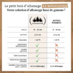 Notre kit d’allumage complet est idéal pour l’allumage d’un feu et faire une flambé complète. Le bois est sec en dessous de 20% d’humidité, les allume-feu sont 100% naturels et notre bois est fabriqué dans notre unité de production dans les Alpes-de-Haute-Provence en France. Notre arrivage de bois est local et 100% de bois feuillu.
