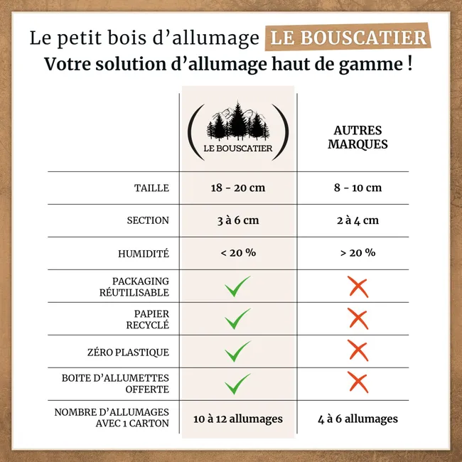 Notre kit d’allumage complet est idéal pour l’allumage d’un feu et faire une flambé complète. Le bois est sec en dessous de 20% d’humidité, les allume-feu sont 100% naturels et notre bois est fabriqué dans notre unité de production dans les Alpes-de-Haute-Provence en France. Notre arrivage de bois est local et 100% de bois feuillu.