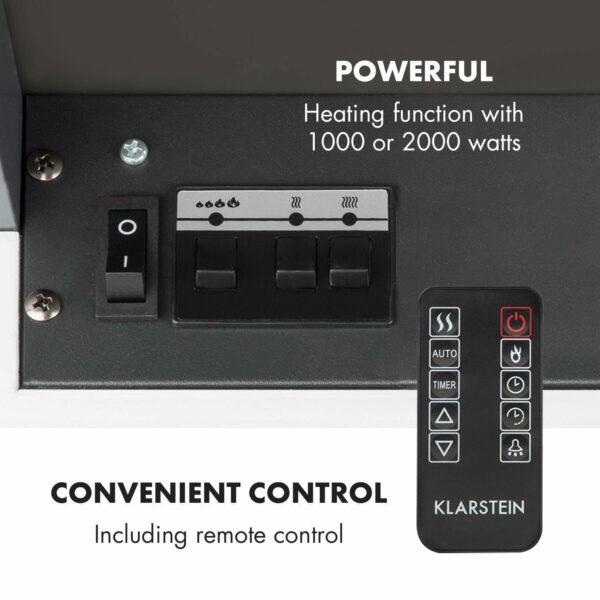- cheminée électrique avec éclairage et fonction de chauffage commutable